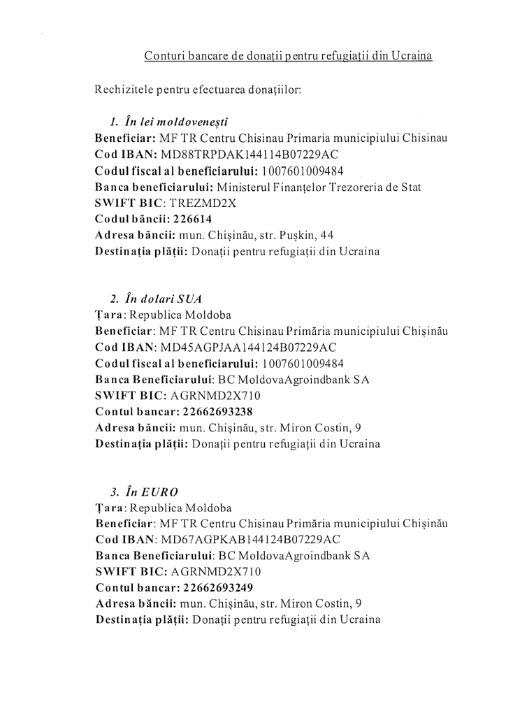 Conturi banсаrе de donații рentru refugiații din Ucraina