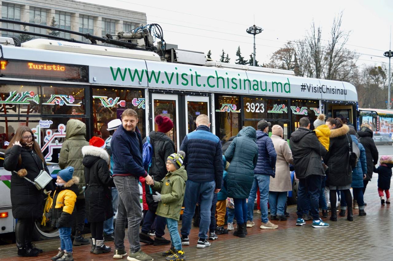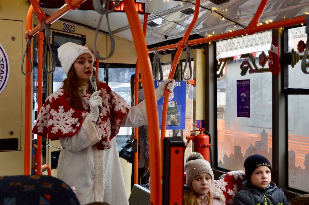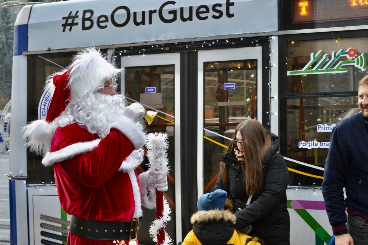 Cunoaște orașul alături de Moș Crăciun! Ruta specială a troleibuzului turistic, a pornit la drum