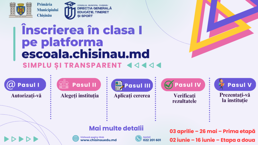 ℹ️Campania dată conjugă eforturile noastre spre asigurarea unui ajutor continuu părinților. În acest sens, îi îndemnăm pe părinți să se informeze cu privire la procesul de înscriere și instrucțiunile de aplicare pentru clasa I pe platforma www.escoala.chisinau.md